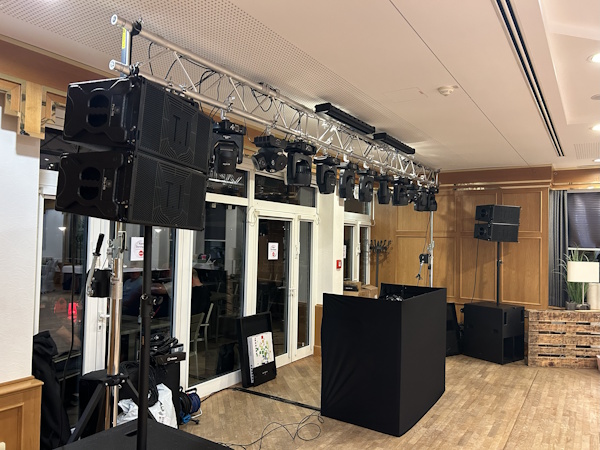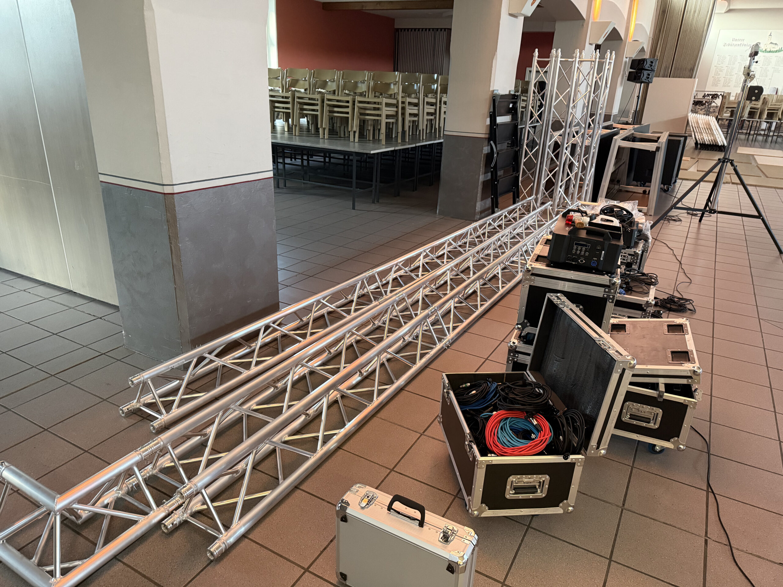 Aufgrund diverser Stative oder Traversen sind wir mit unseren Aufbauten sehr flexibel.